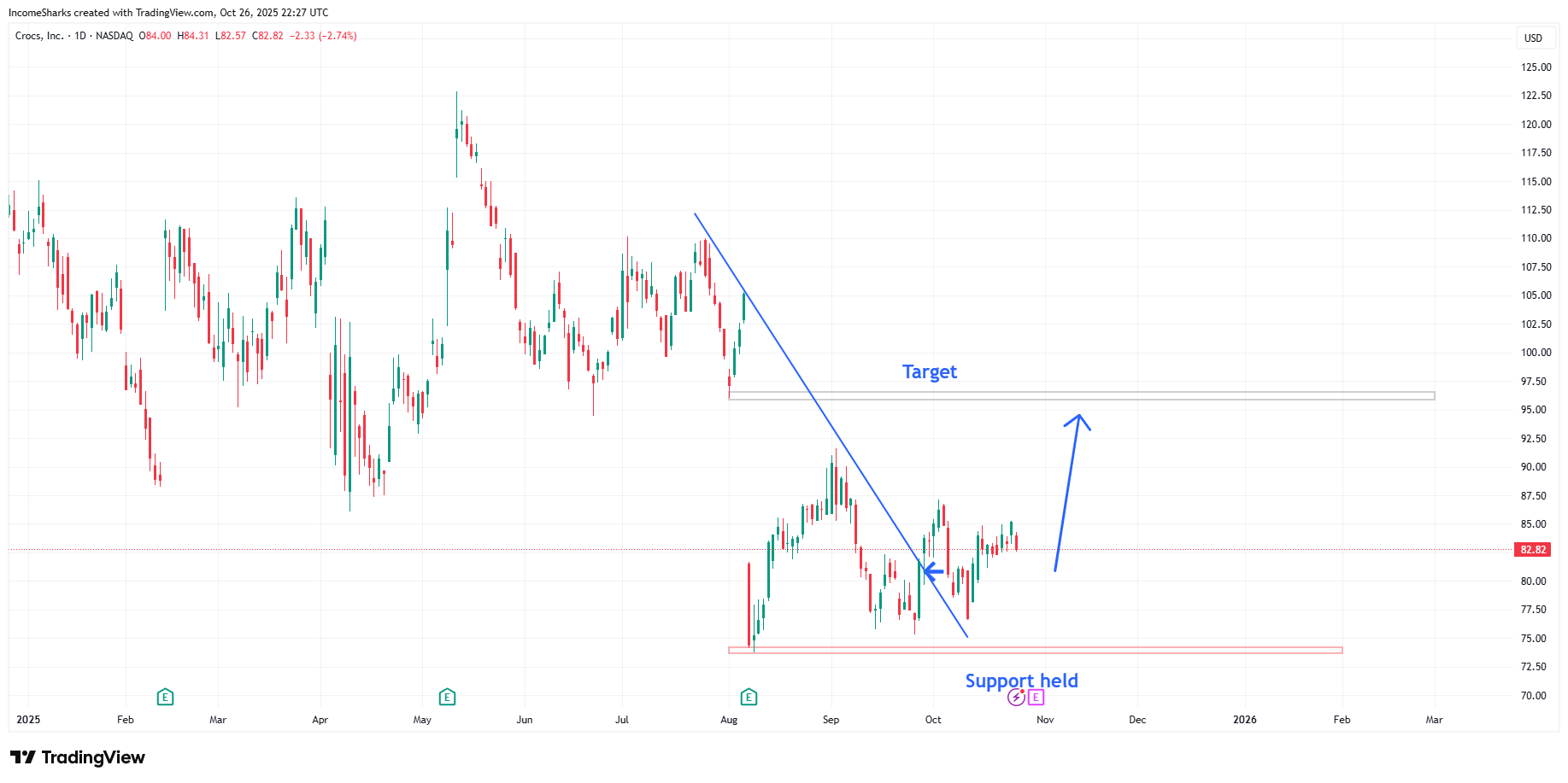 $CROX ( ▲ 0.12% ) (Crocs) - Still holding, still in profit.