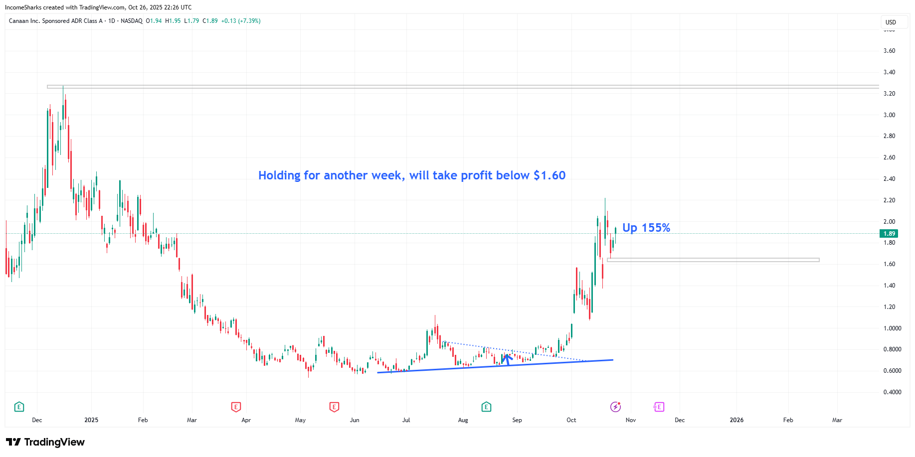 Will keep holding as strength keeps showing. Hoping for another big week, and big move wouldn’t hurt to de-risk profits as well. Currently up 155%, wouldn’t be shocked to see it reach 200% which would also be a decent place to take profits.