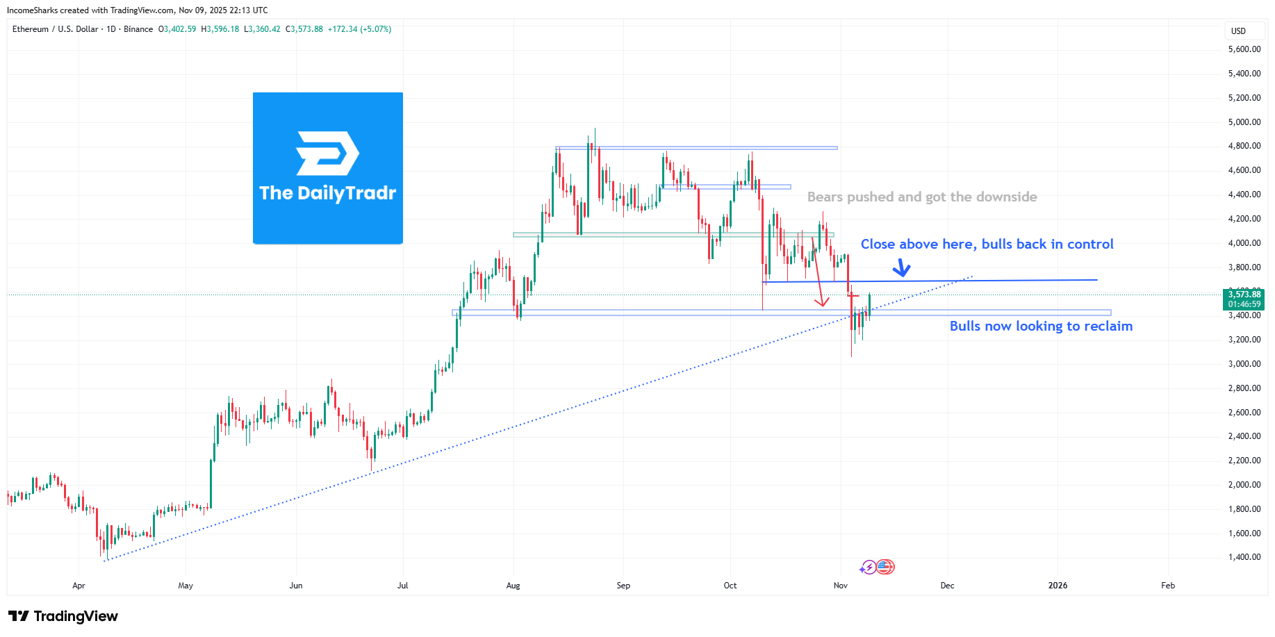 After failing many times at holding $4k we finally got the healthy correction that ripped it down below $3,200. Breaking most supports and even dipping below the major diagonal support. As fear and panic set in this actually now allows for sellers to get exhausted and give bulls a chance to push back up. $3,700 is now a really important level where if we can reclaim that then this can get treated as a correction in a bull market. Close below the $3,200 range again, break that new support, and then it feels like this is just another relief rally in a downtrend.