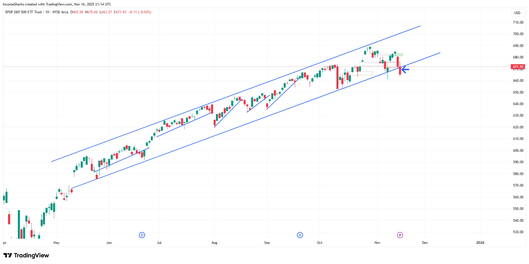 STATUS: BEARISH (First candle close below the channel)