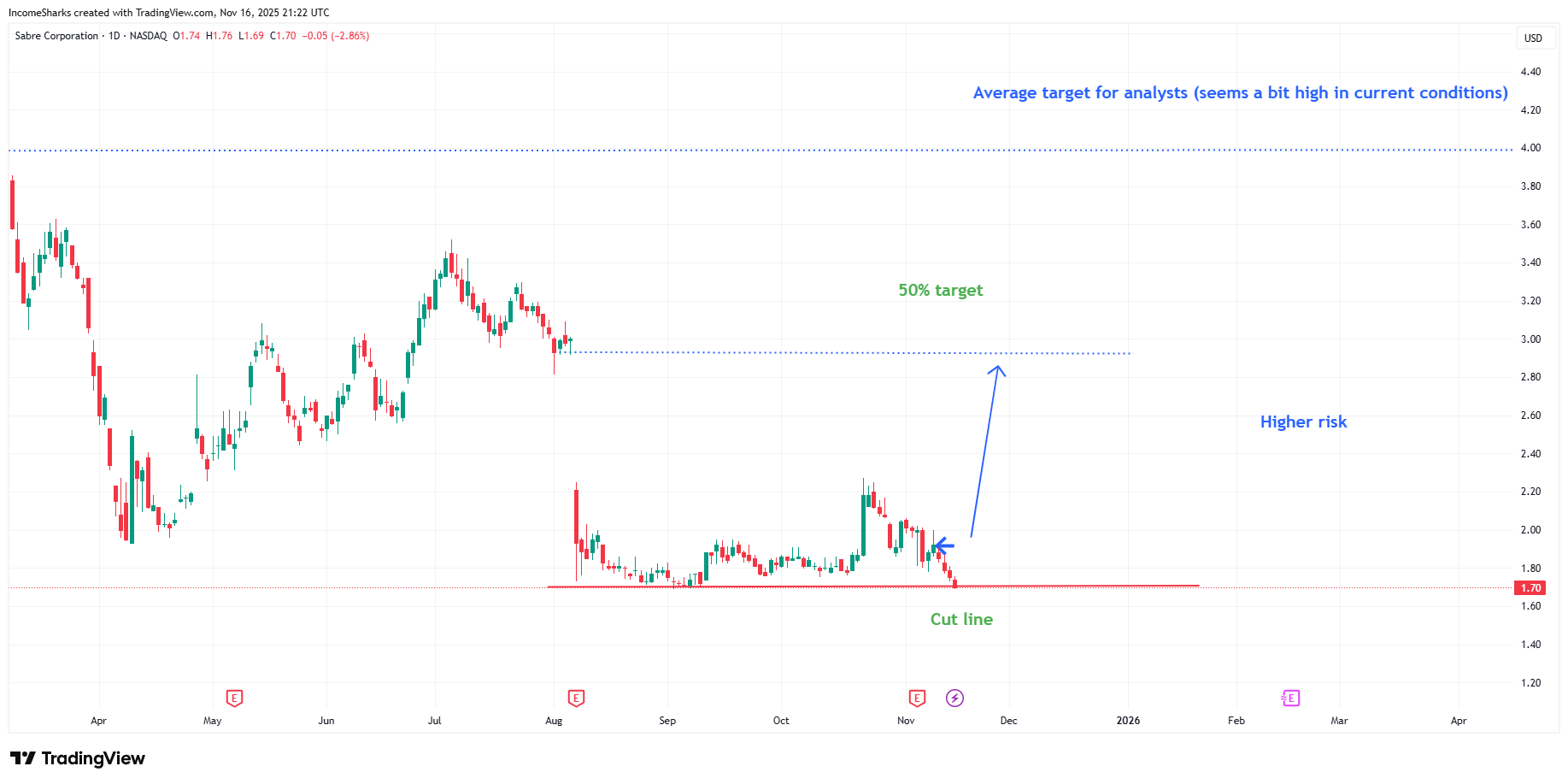 $SABR - Currently down 10%, high of 3%