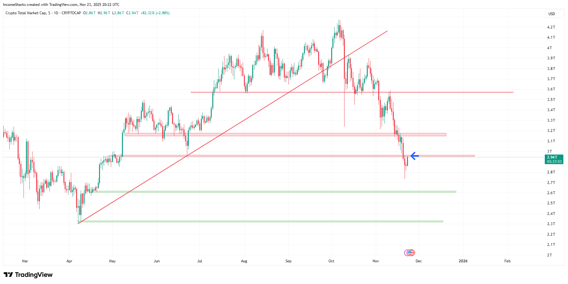We lost the 3 trillion support but are now right about to that level