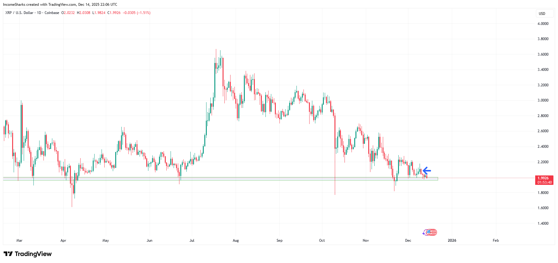 $XRP - UPDATE - Still holding around that $2 support range. Will continue to hold through the week but if we get a close below this support range will look to cut.