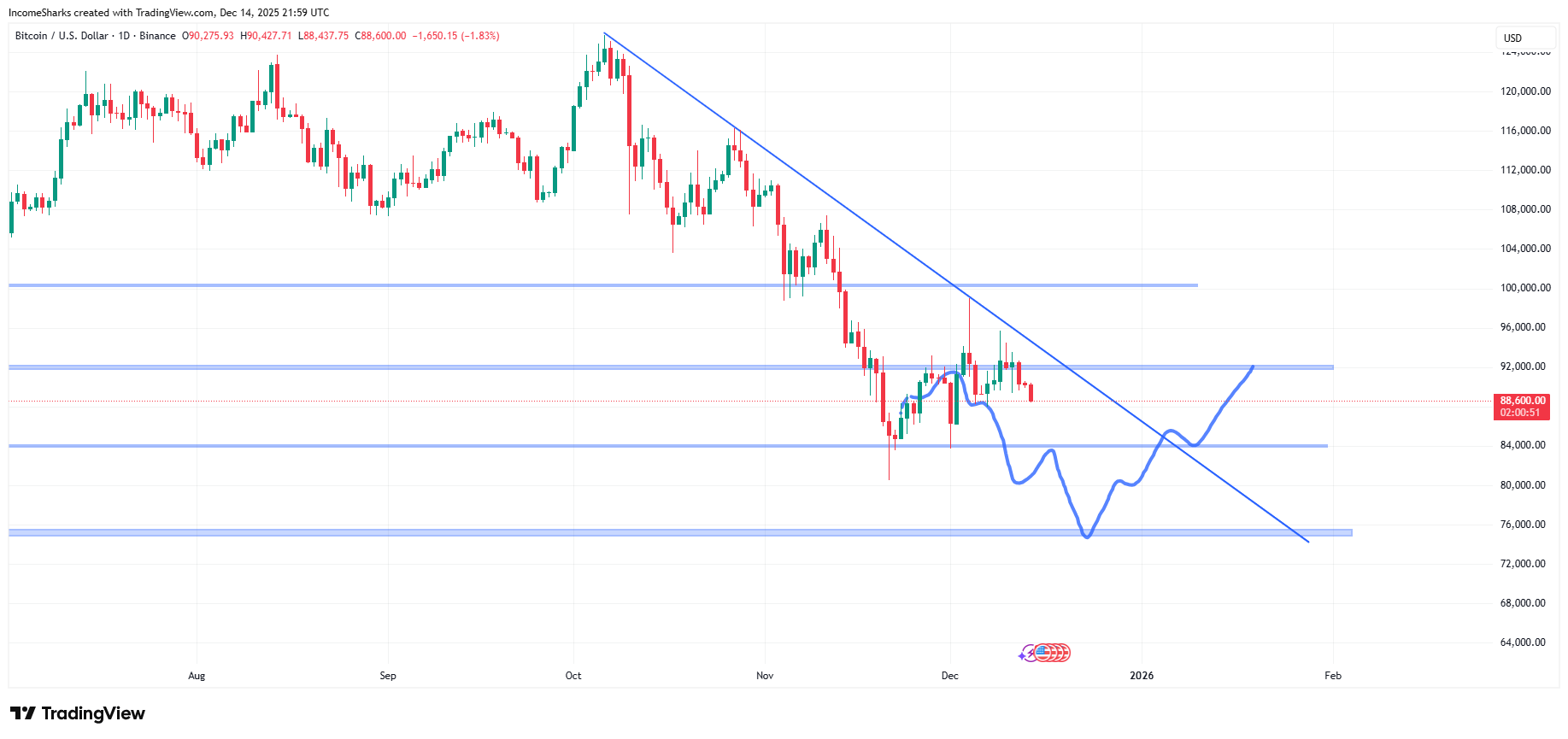 Still hovering around that 3 trillion marketcap support. Holding the diagonal but if that breaks we will probably have another round of selling in crypto. Goods news is there’s still a chance it holds but for now it’s back to leaning like more downside.