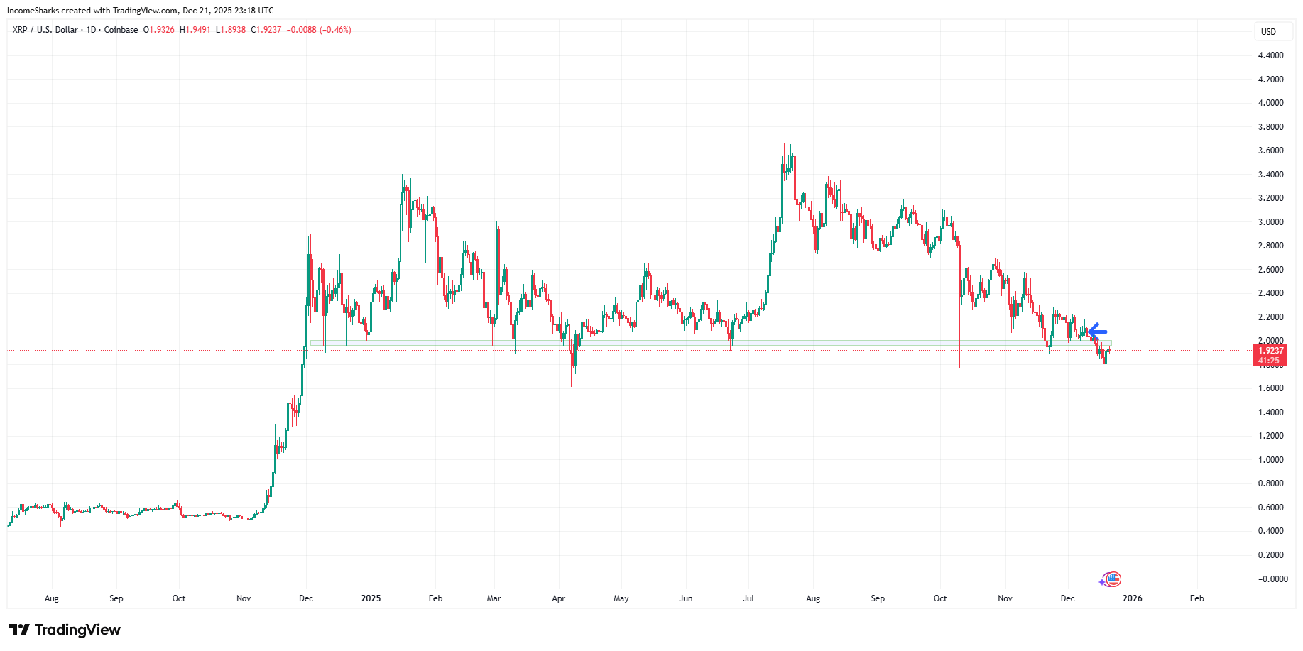 $XRP - UPDATE - Still holding since the drop was pretty short lived and recovered fairly quickly. Sub $2.00 was probably the better entry but assuming stocks and crypto can have a fairly decent week I will probably still hold until next week and see if it reclaims $2 or goes lower and needs to be cut.