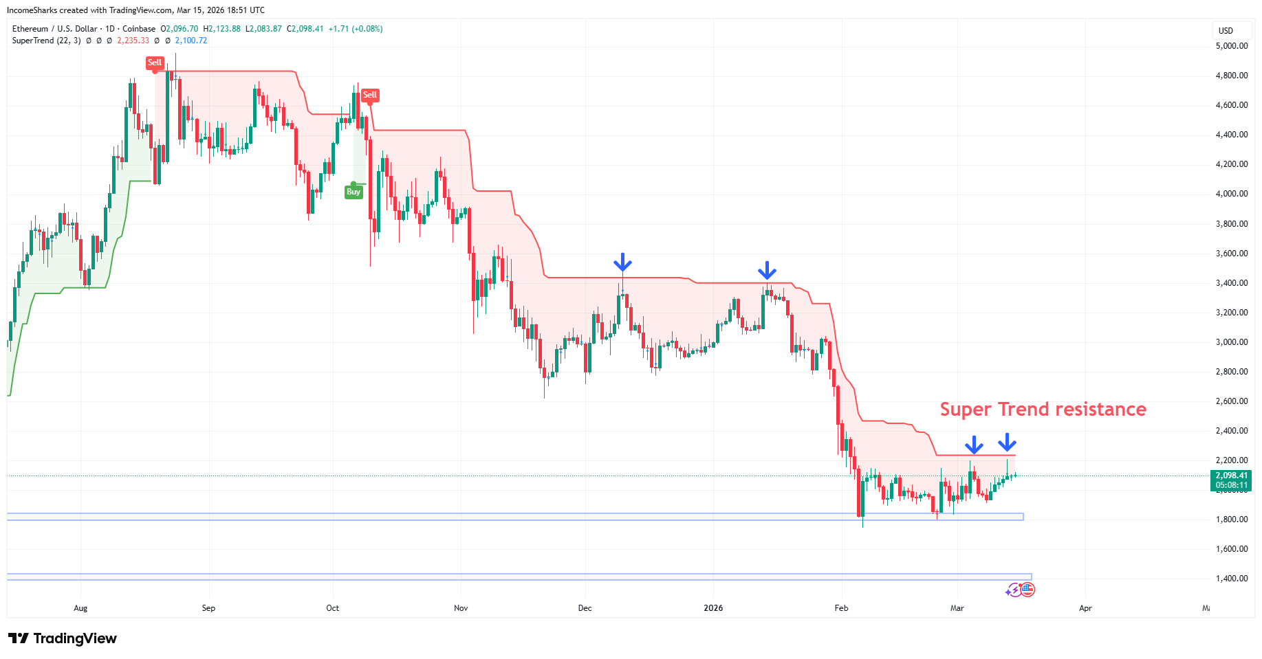 SuperTrend remains the tough obstacle for it to overcome. Ethereum Foundation selling doesn’t help but just like Bitcoin a strong week none the less.