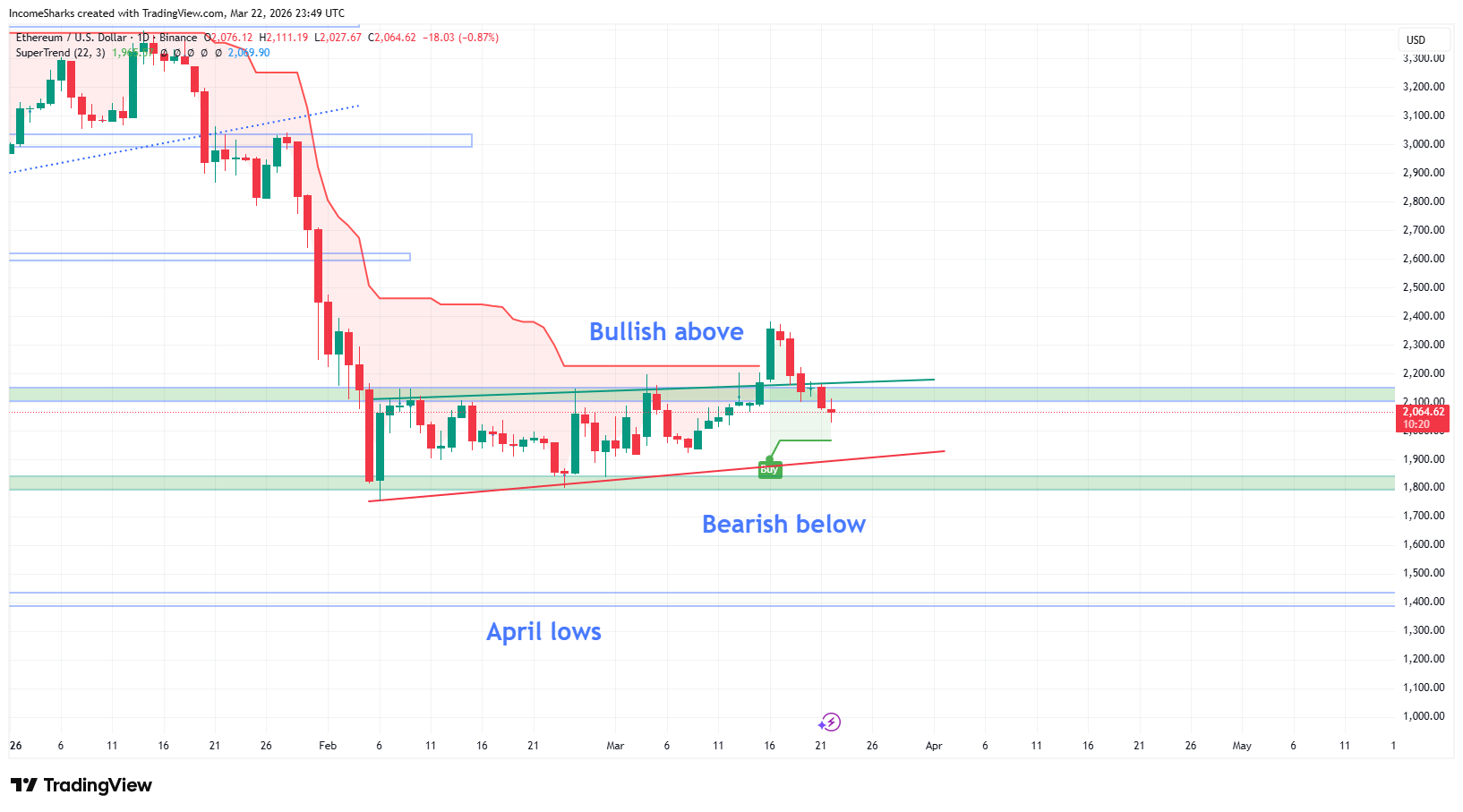 As long as we can hold the SuperTrend support (green line) I’m still thinking there’s some hope for crypto which many have lost all hope for. We’ve never even re-tested the breakdown and even the bears might be looking for that level to hit again if they wanted to short it.