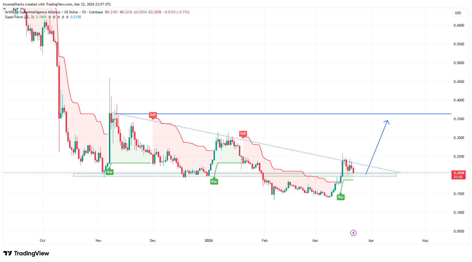 $FET (NEW) - Trade idea pretty simple, hold the supertrend and keep holding for a bullish breakout, get the breakdown go back to sitting on hands.